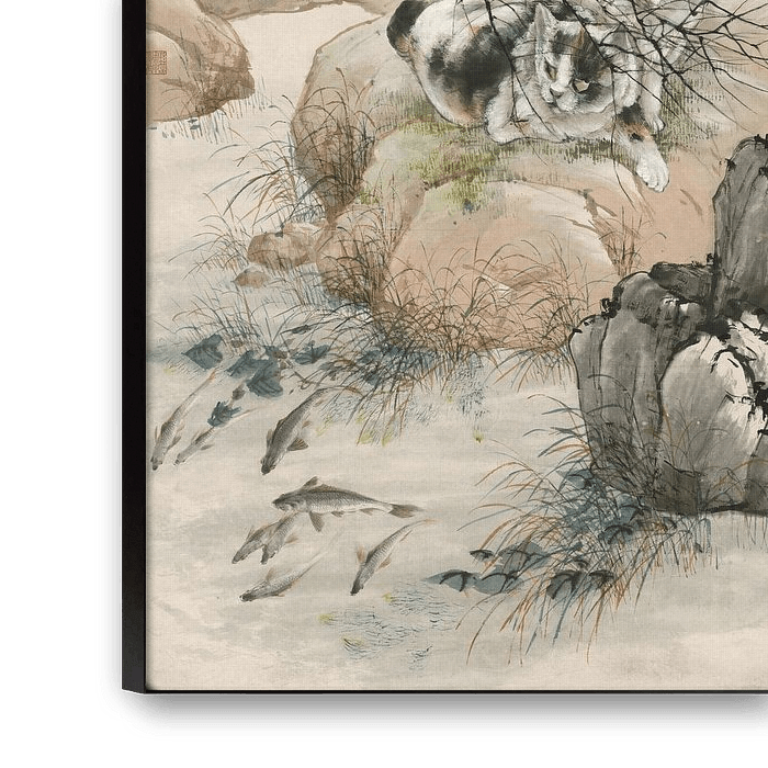 Achetez Cheng Zhang,Le chat regardait le poisson, Tirages d'art chinois en tant que reproduction sur toile, aluminium, ArtFrame ou photographie (encadrée), impression d'art en haute qualité et tout format