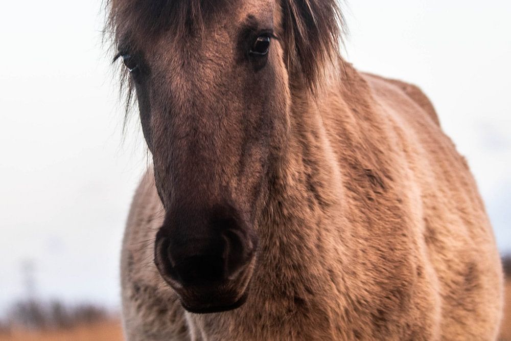 La lumière était magnifique et les animaux étaient détendus et curieux. Je garde toujours la plus grande distance possible, mais ces animaux ont trouvé cela très intéressant et sont venus jeter un coup d'œil. Cette jument était l'une d'entre elles.