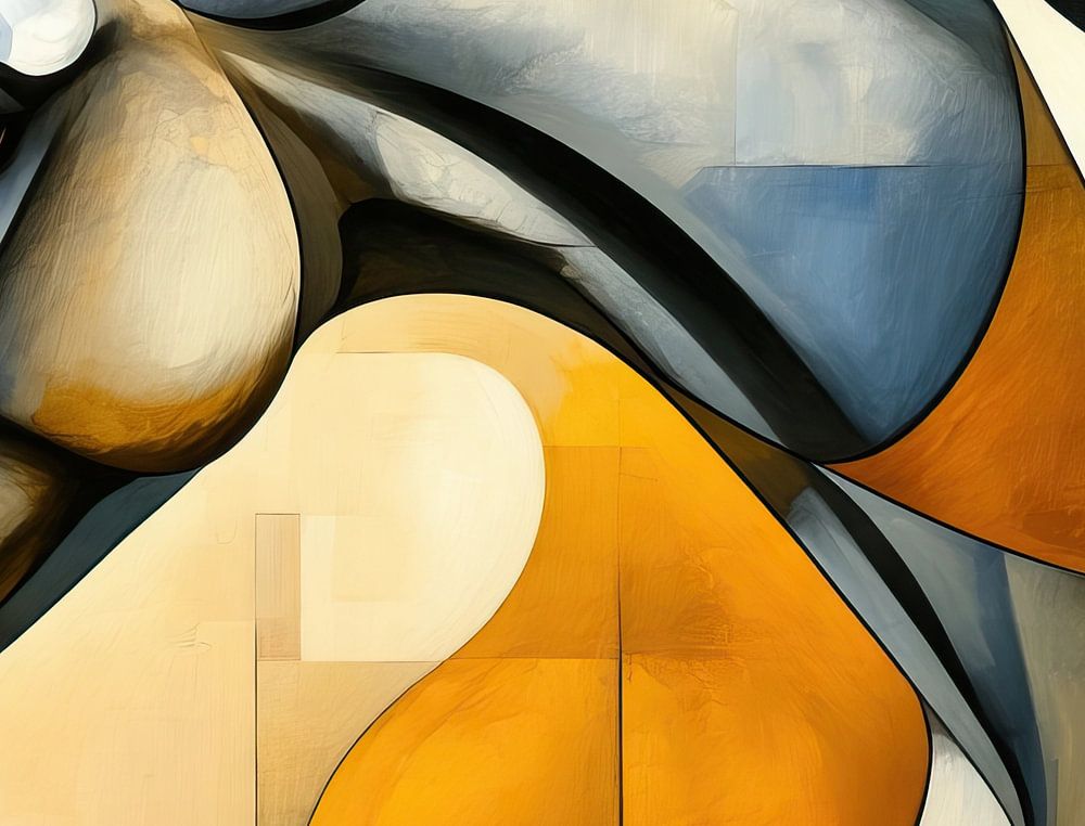Cheval abstrait - Cette peinture de cheval montre une image abstraite d'un cheval, avec des formes et des couleurs joliment fusionnées dans différentes nuances de gris, de blanc et d'or.