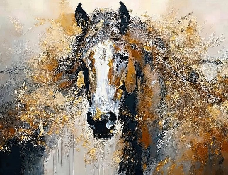 Achetez cette œuvre d'art abstraite Cheval d'or 3 par Marjolein Deelen sur toile, aluminium, ArtFrame ou photographie (encadrée), impression d'art en haute qualité et tout format.