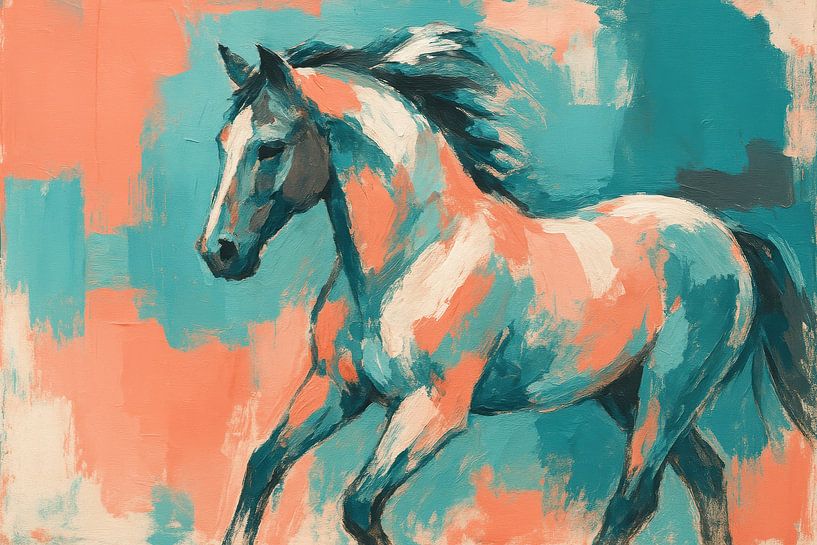 Achetez cette œuvre d'art abstraite Cheval en turquoise et corail par Art & Soul Creations sur toile, aluminium, ArtFrame ou photographie (encadrée), impression d'art en haute qualité et tout format.