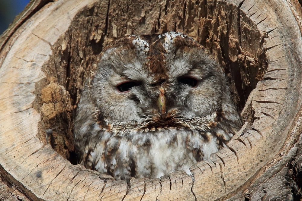 A propos de "Chevêche d'Athéna (Strix aluco) dans un tronc d'arbre creux Allemagne"