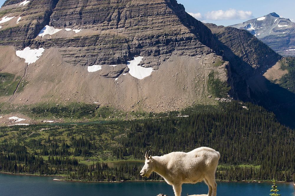 Au nord des États-Unis, à la frontière avec le Canada, se trouve le Glacier N.P. Un magnifique parc national accidenté plein de montagnes, de lacs, de chutes d'eau et d'animaux sauvages. Idéal pour de longues promenades et pour profiter de toute la beauté que cette région a à offrir. Cette photo a été prise lors d'une randonnée dans les environs du col de Logan. Cette zone est située à un peu plus de 2000 mètres d'altitude, ce qui en fait la zone la plus élevée du parc. Lors de vos randonnées dans cette région, vous aurez la chance de voir des chèvres de montagne se régaler des nombreuses herbes et fleurs qui poussent ici.