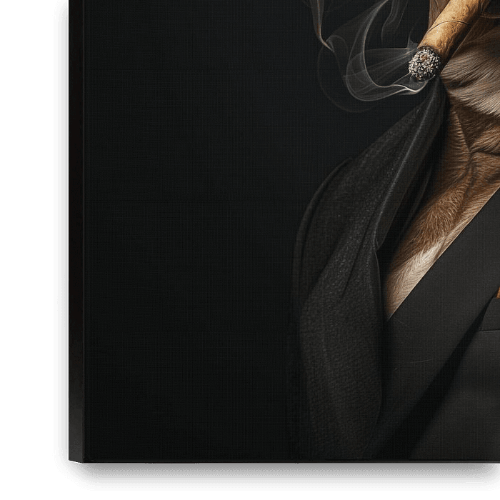 La peinture chien avec cigare donne vie avec humour et style au personnage d'un chien brun confiant. Cette œuvre d'art saisissante montre un chien tenant nonchalamment un cigare dans sa gueule, ce qui lui donne un côté ludique et excentrique. La combinaison du réalisme et de la créativité fait de ce tableau un véritable accroche-regard…