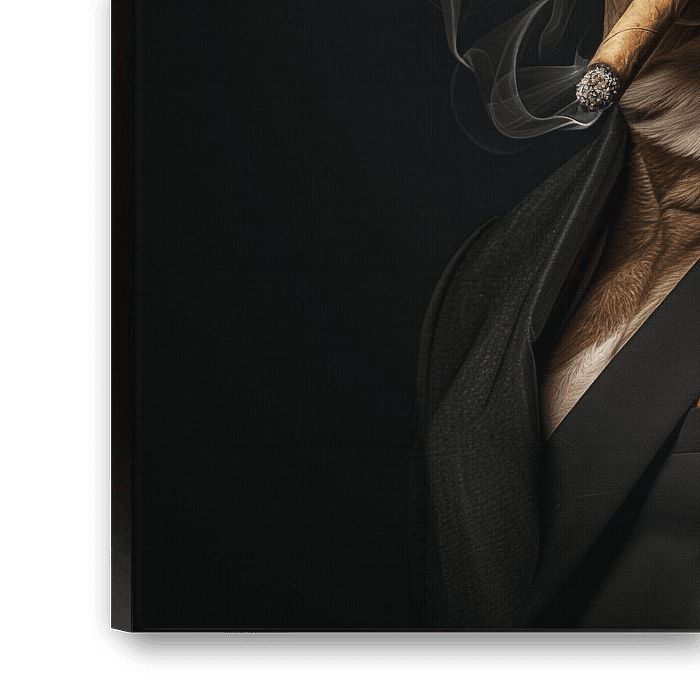 Ce tableau représentant un chien avec un cigare sera une merveilleuse addition luxueuse à n'importe quelle pièce. Avec son look unique et élégant, il attire tous les regards. Les couleurs brillantes et le design inhabituel rendent cette œuvre d'art 100% unique et originale. C'est l'impression photo parfaite pour compléter votre intérieur.