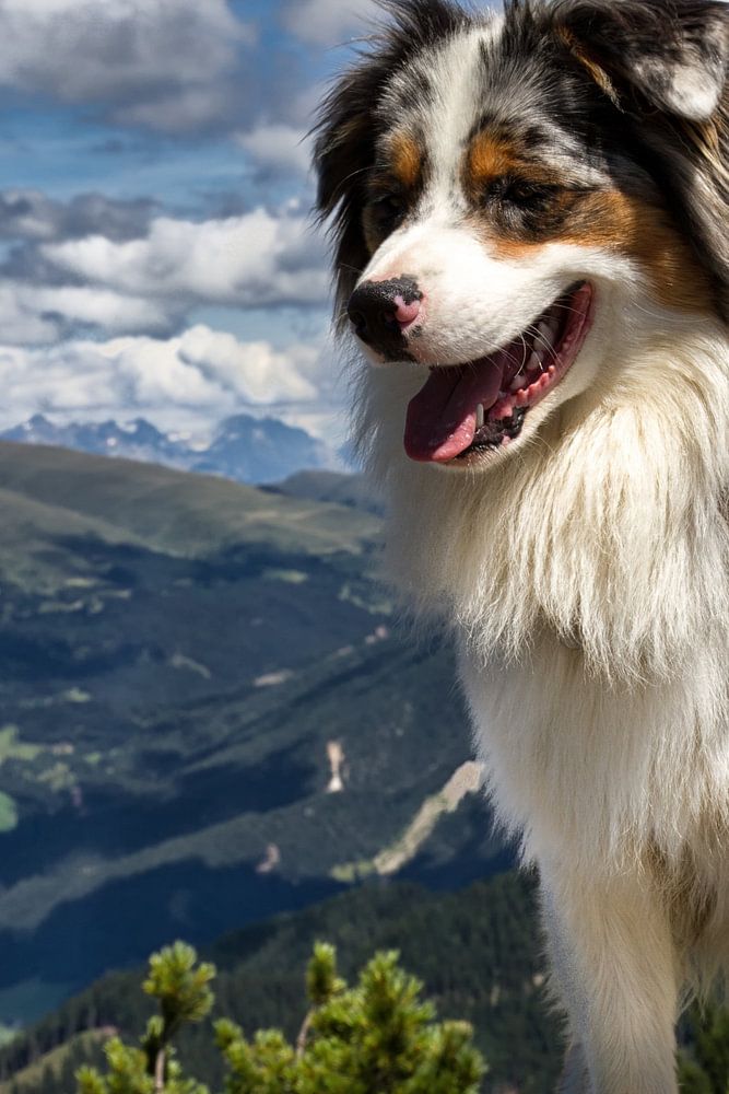 Achetez cette œuvre d'art de paysage Chien du Tyrol du Sud sur le Raschötz par Martina Weidner sur toile, aluminium, ArtFrame ou photographie (encadrée), impression d'art en haute qualité et tout format.