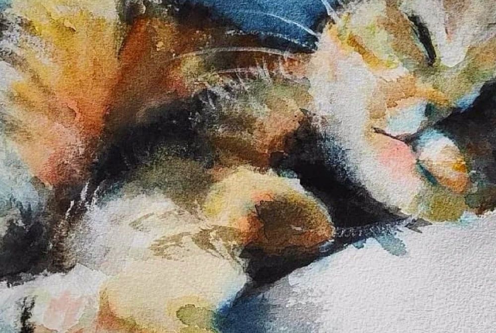 J'ai capturé le moment où mon chat profite du soleil - sa douceur, son regard élégant et sa posture détendue. J'ai choisi l'aquarelle parce que le style libre de cette technique convient parfaitement à la nature excentrique des chats.