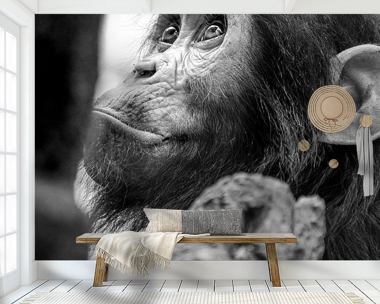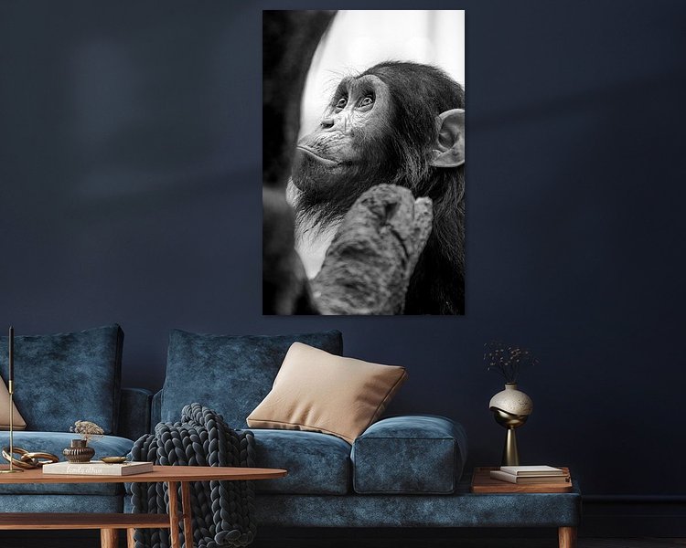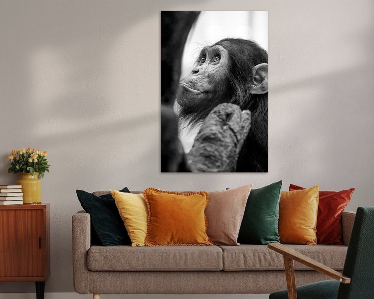 Nous avons dû parcourir une certaine distance pour nous rendre au parc national de Gombe. C'est l'un des rares endroits au monde où l'on peut observer des chimpanzés sauvages. Nous avons marché dans la jungle et, au bout d'un moment, nous sommes tombés sur un groupe. Ce singe a marché tranquillement devant moi et s'est assis derrière un arbre. J'ai pu placer mon objectif juste après l'arbre et j'ai obtenu une mise au point parfaite sur le chimpanzé. En noir et blanc, le résultat est encore meilleur. Comme si le singe était perdu dans ses pensées.