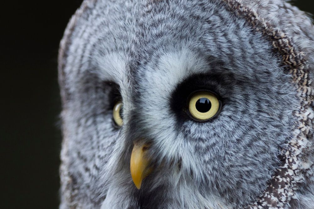 Chouette barbue ( Strix nebulosa ), également connue sous le nom de chouette de Laponie, la plus grande espèce de chouette européenne, portrait de tête, en gros plan.