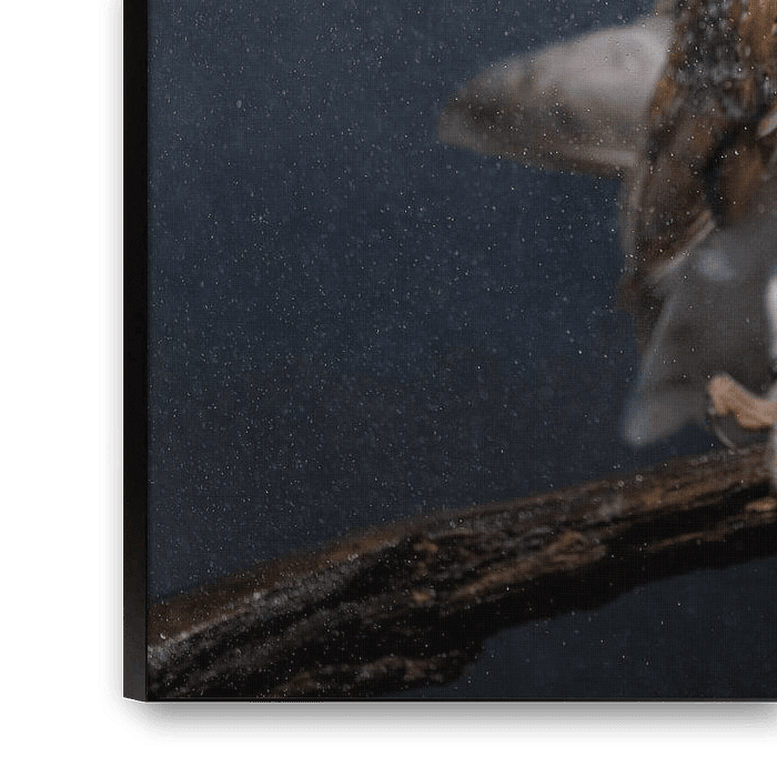 Cette chouette de grange prenait une belle douche. À travers le fond sombre, un arc-en-ciel est devenu bien visible.