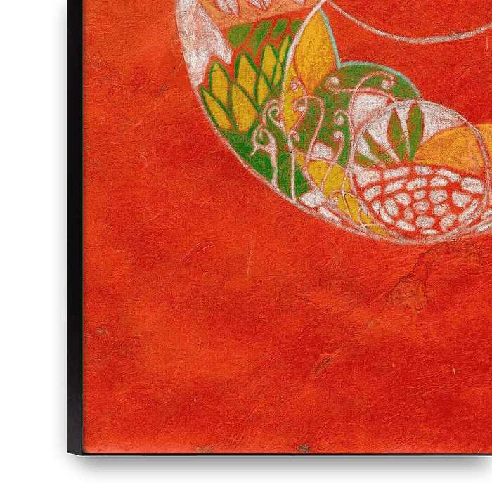 Un dessin au pastel sur papier, caractérisé par un rouge vif.