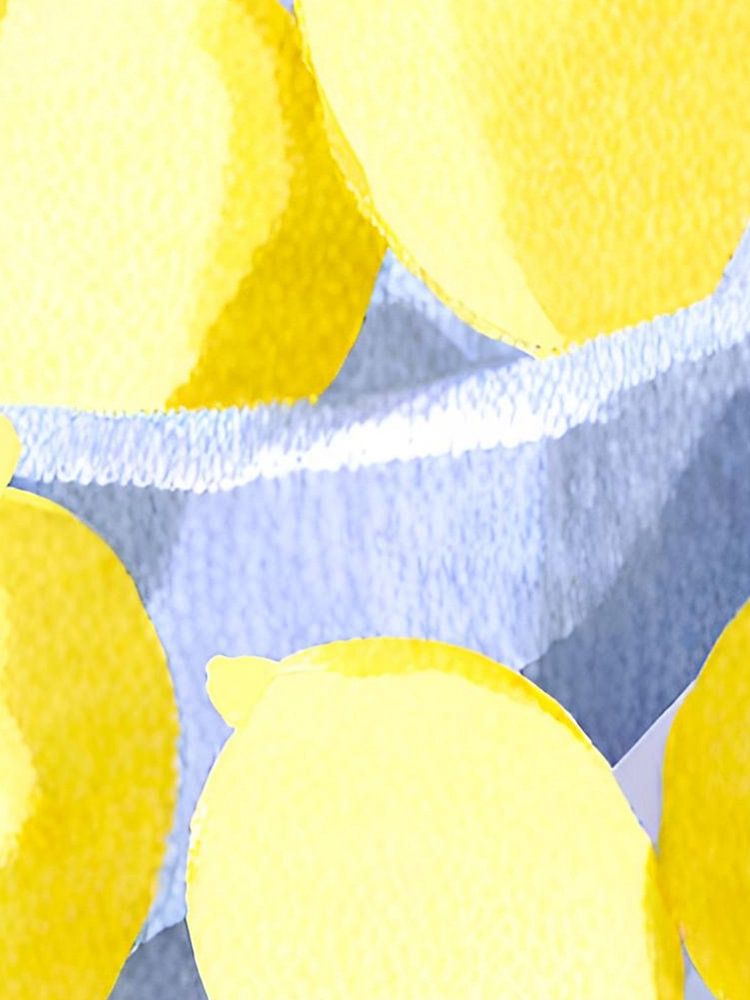 Nature morte de citrons jaunes dans un bol violet sur fond violet, aquarelle, fraîcheur estivale
