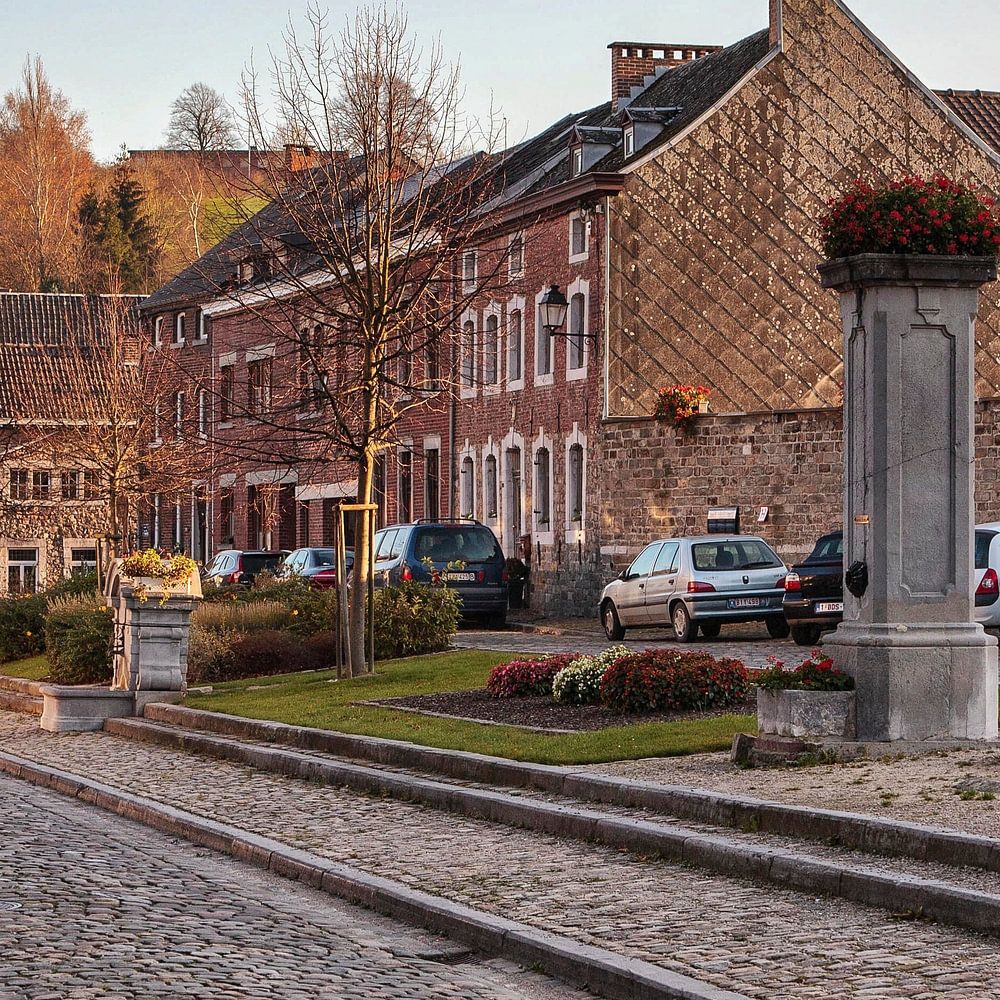 Vue du centre historique de Clermont sur Berwinne à travers la porte de la ville.