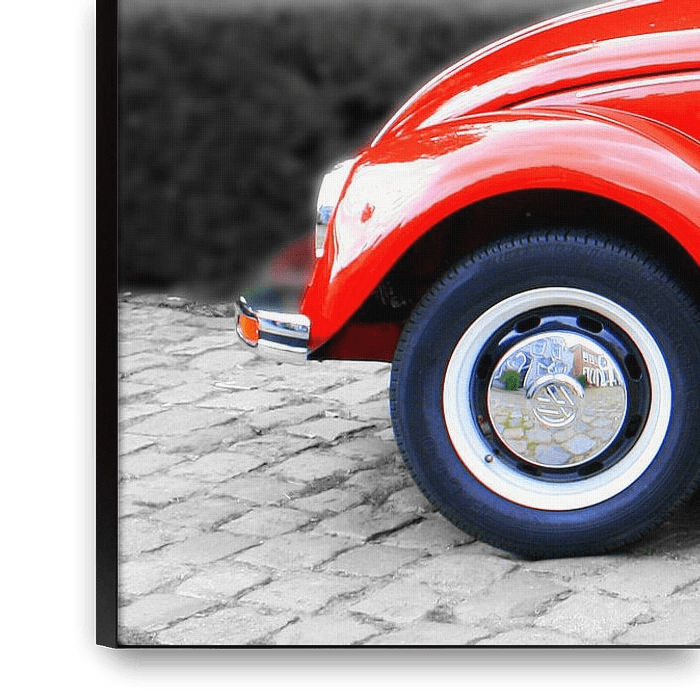Coccinelle Volkswagen en noir et blanc avec accent de couleur