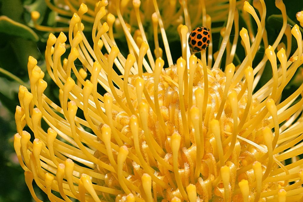 Coccinelle sur une fleur de Protea jaune par Ines Porada