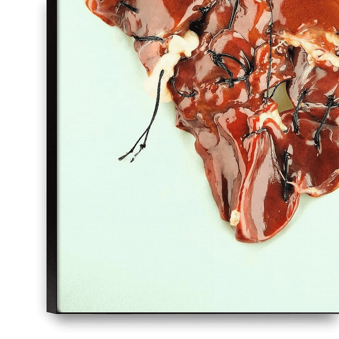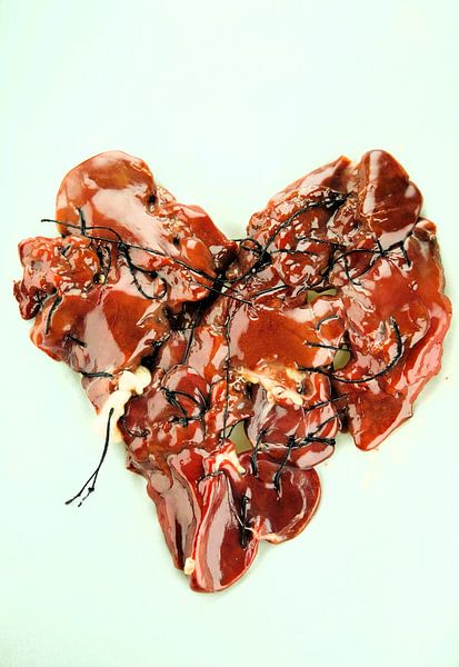 Achetez cette photo Cœur cousu avec des morceaux de viande par Claudia Luijten sur toile, aluminium, ArtFrame ou photographie (encadrée), impression d'art en haute qualité et tout format.