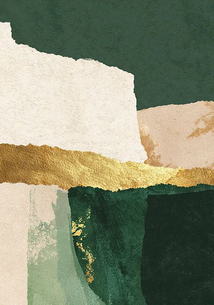 Achetez cette œuvre d'art abstraite Collage abstrait dans les tons vert, beige et doré par Niklas Maximilian sur toile, aluminium, ArtFrame ou photographie (encadrée), impression d'art en haute qualité et tout format.