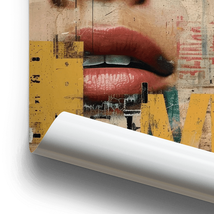 Portrait, collage d'art numérique. Une œuvre colorée qui attire tous les regards ! Choisissez vous-même le format et le matériau et adaptez-le à votre intérieur.