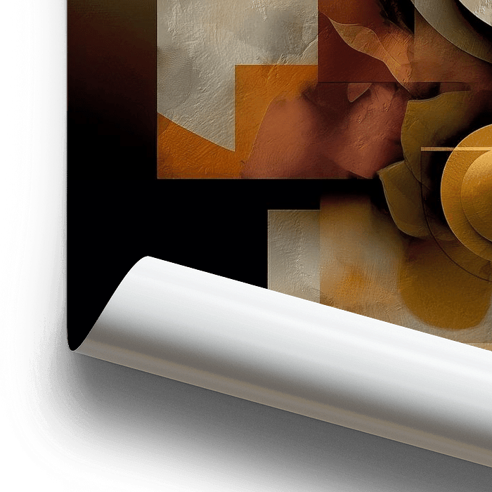 Collage abstrait dans des tons chauds et atmosphériques de terre avec une rose, des accents dorés et une texture de pierre grossière.