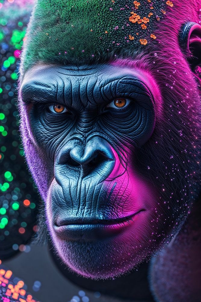 Faune > abstrakt > digitale Collage > algorithmische Fragmente > Image d'un gorille sous forme de collage numérique