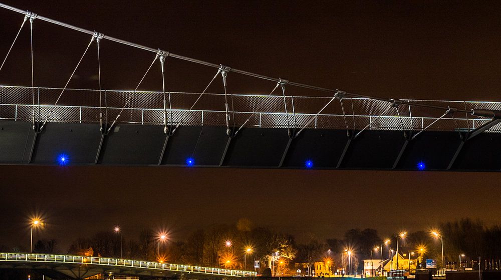 Nachtopname met lange sluitertijd van de Collegebrug over de Leie in Kortrijk
