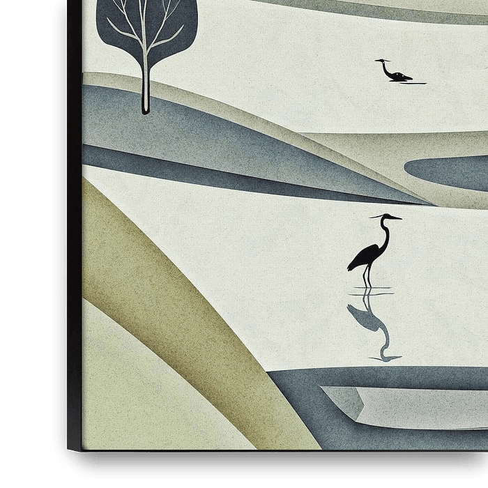 Achetez cette œuvre d'art de paysage Collines, eau et hérons - minimalisme (2) par Anna Marie de Klerk sur toile, aluminium, ArtFrame ou photographie (encadrée), impression d'art en haute qualité et tout format.