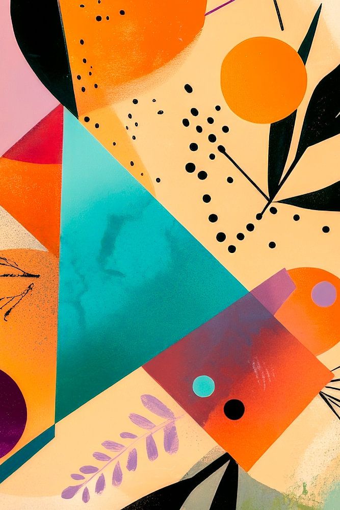 Des couleurs vives et des formes géométriques dansent harmonieusement dans l'espace et créent une atmosphère pleine de créativité. Les touches ludiques de vert et d'orange associées à des tons pastel doux confèrent à l'artwork une légèreté fraîche. Parfait pour attirer l'attention dans le salon, pour susciter l'inspiration et stimuler les conversations.