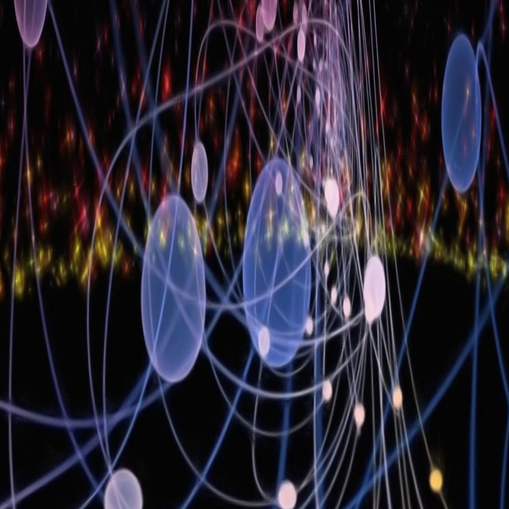 Peinture numérique abstraite à la gouache en rouge, bleu, violet, jaune, blanc et noir.