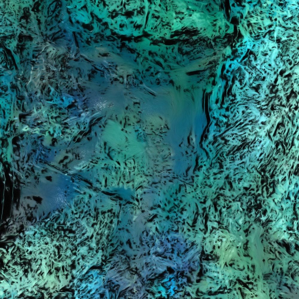 Peinture numérique abstraite à la gouache dans des tons de bleu et de vert.
