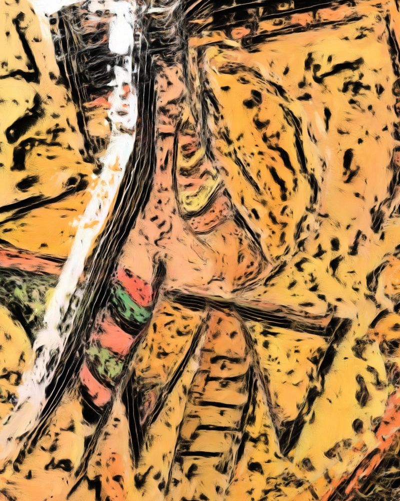 Peinture numérique abstraite à la gouache en orange rouge vert jaune noir et blanc