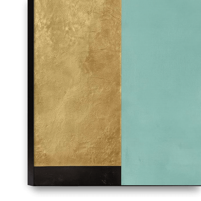 Achetez cette œuvre d'art abstraite Composition sarcelle-or avec accent noir par Niklas Maximilian sur toile, aluminium, ArtFrame ou photographie (encadrée), impression d'art en haute qualité et tout format.