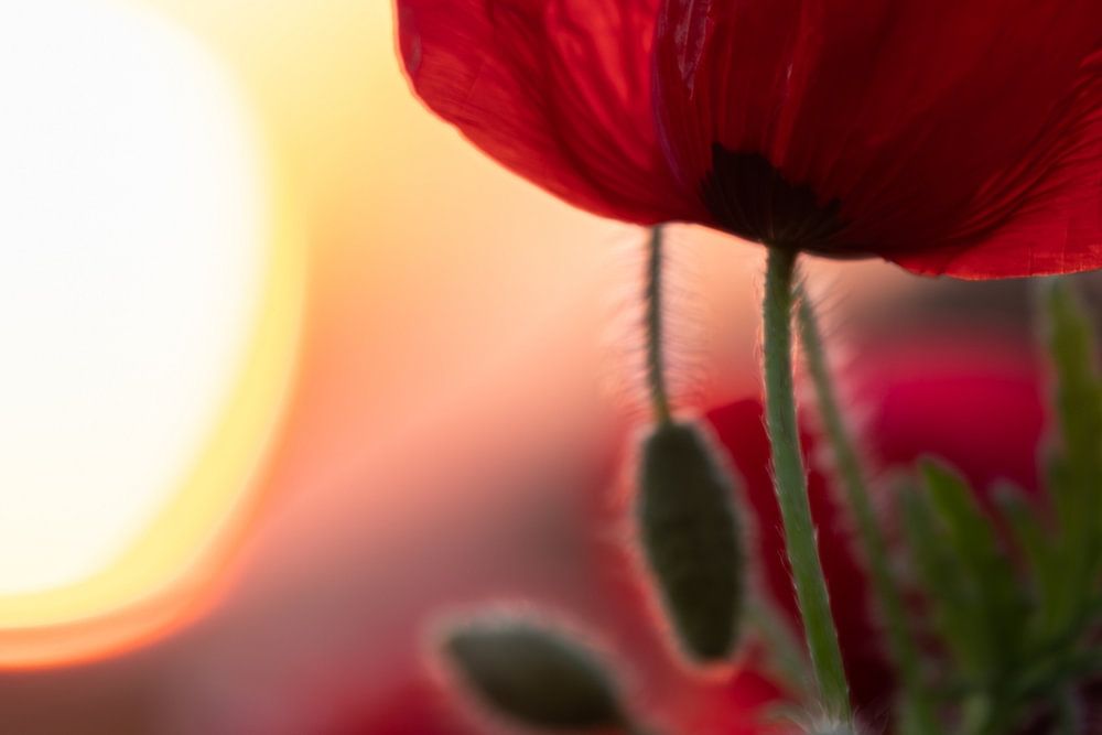 Elle brille à travers le rouge des pétales des coquelicots, qui créent également une belle silhouette. Une image apaisante et romantique.
