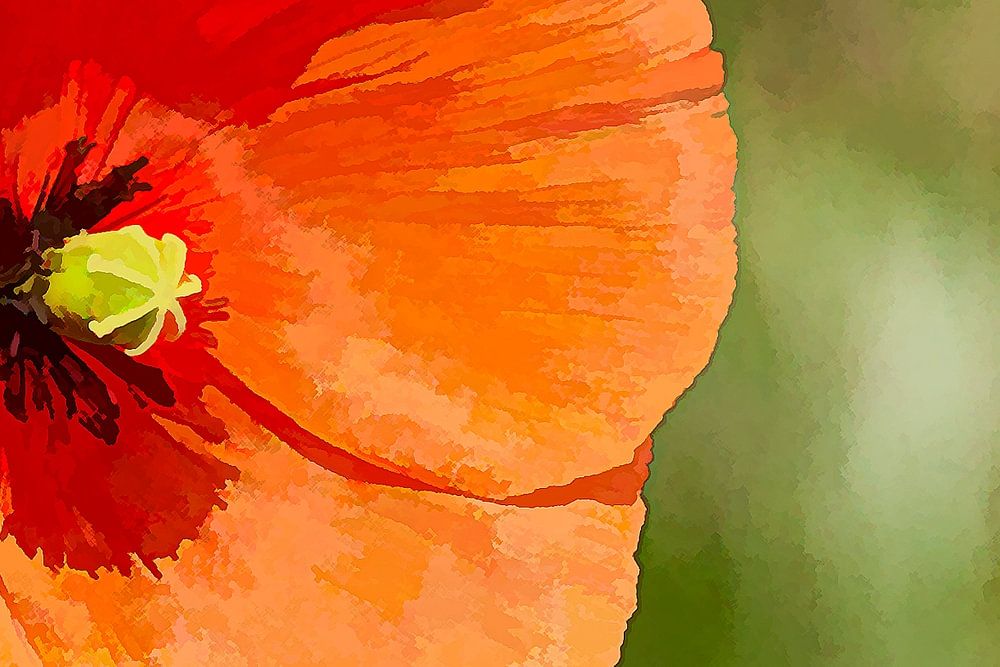 Une photographie éditée d'un coquelicot. Le beau rouge du coquelicot contre le vert frais de l'herbe.