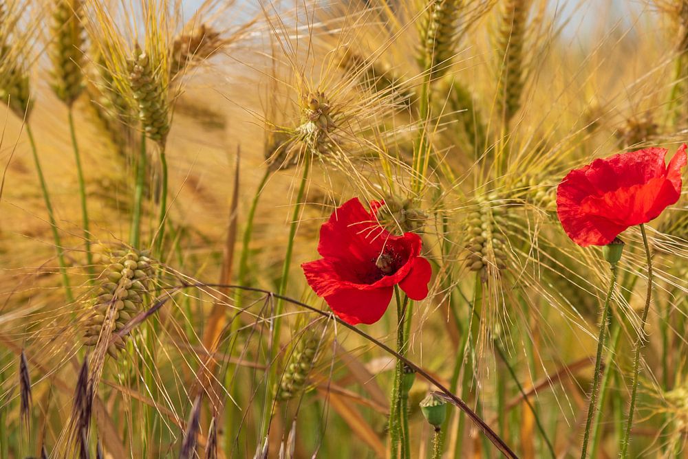 Le vent léger semble faire murmurer les chaumes, tandis que les coquelicots rouges s'illuminent comme de petites flammes parmi l'or. C'est une scène qui respire la paix et la liberté, un moment où le temps s'arrête un instant et où la nature montre son visage le plus simple mais le plus beau.
