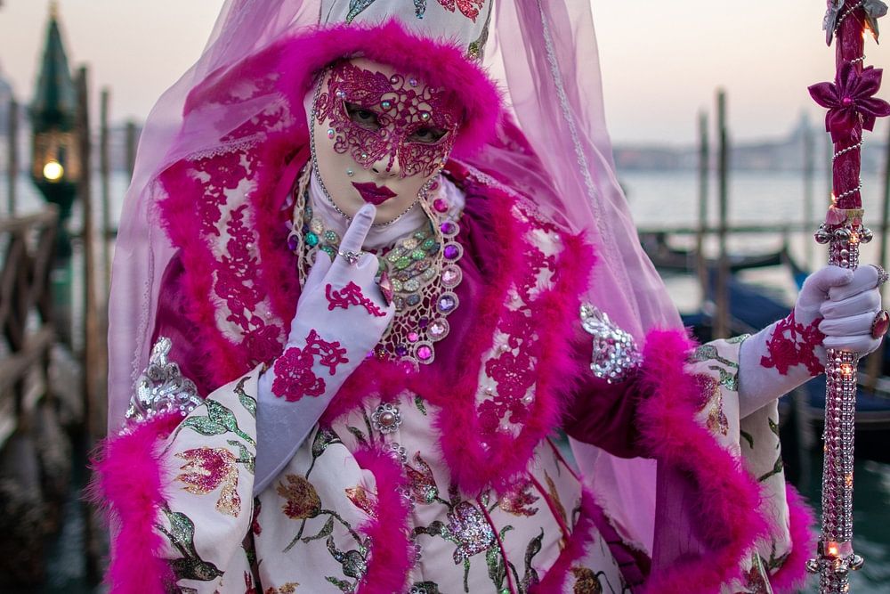 Costume rose au carnaval de la place Saint-Marc à Venise par t.ART