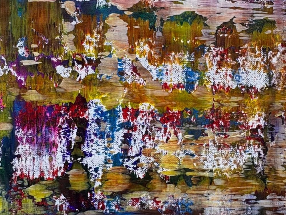 J'ai appliqué la peinture couche par couche avec la raclette. Sombre, clair, à nouveau sombre. La toile a pu rester telle qu'elle est.
