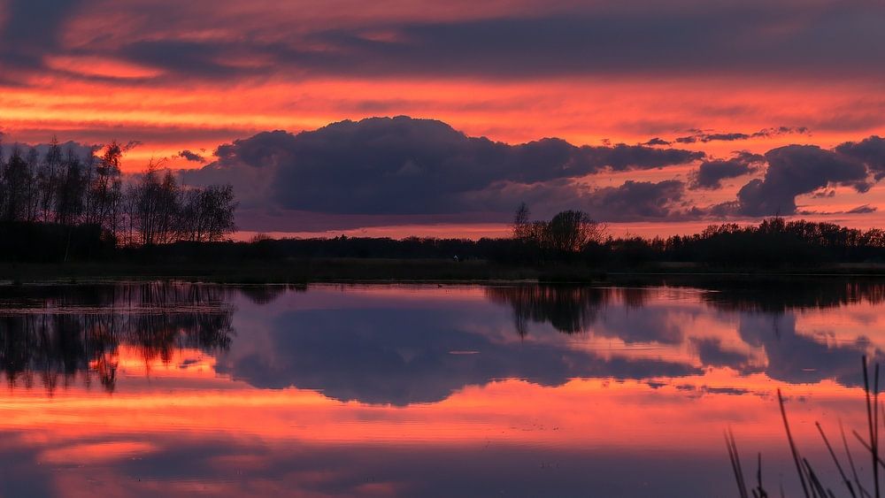 Un coucher de soleil en mars. La photo a été prise dans la réserve naturelle de Haaksbergerveen, dans l'est des Pays-Bas.