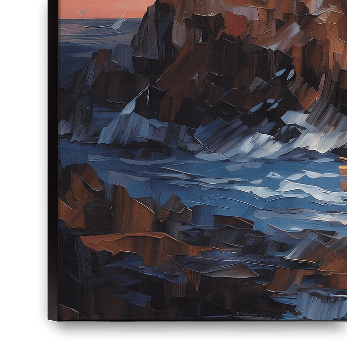 Cette peinture numérique abstraite donne vie à l'enchantement d'un phare au coucher du soleil. Les couleurs chaudes du soleil couchant entourent la tour élancée. Cette peinture vous invite à apprécier la paix et la beauté de ce moment serein au bord de la mer.