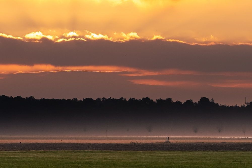 Le banc de brouillard au loin, combiné aux imposants rayons de soleil dans le ciel, donne une image intéressante. Cela donne à l'image quelque chose d'intéressant et de mystérieux.