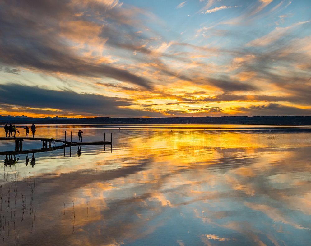 Coucher de soleil dramatique à Ammersee, Bavière, Allemagne