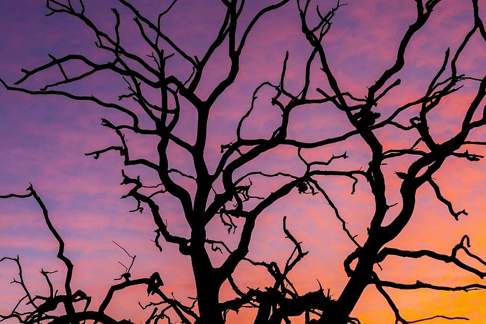 Silhouette d'un vieil arbre juste après le coucher du soleil sur la Loenermark (Veluwe). J'avais déjà fait mes valises et je me dirigeais vers la maison. Quand je me suis retourné, j'ai vu que le ciel était coloré en violet/orange. Aussi vite que j'ai pu, j'ai déballé mon appareil photo sur le trépied et j'ai pris cette photo, quelques secondes plus tard le spectacle était terminé.