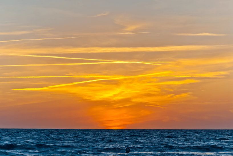 Achetez cette photo Coucher de soleil sur la mer par temps orageux par Alexander Baumann sur toile, aluminium, ArtFrame ou photographie (encadrée), impression d'art en haute qualité et tout format.