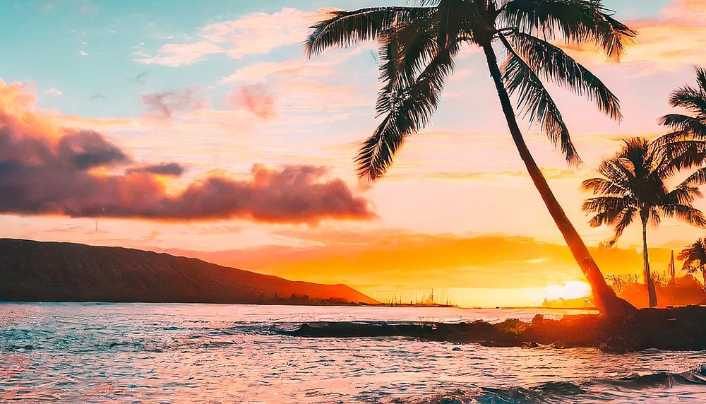 Coucher de soleil sur une plage avec des palmiers