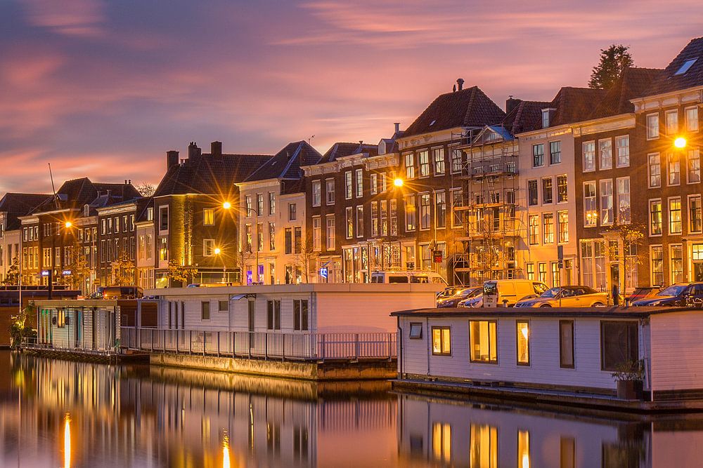 Coucher de soleil au Londense Kaai à Middelburg, Zélande