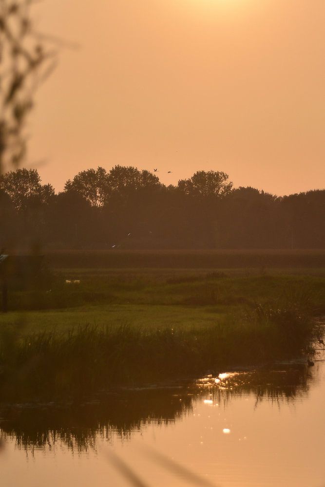 Le soleil se couche sur le Schulpervaart, juste à la sortie de Limmen. Des bateaux avec des coquillages naviguaient ici pour se rendre aux fours à chaux d'Akersloot.