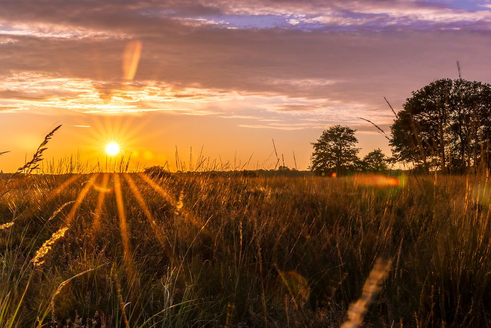 J'ai pris cette photo le 6 octobre 2024, lors d'un magnifique coucher de soleil dans le parc national de Dwingelderveld, à Ruinen. La lumière du soleil couchant éclairait le paysage d'une chaude lueur et les couleurs du ciel étaient à couper le souffle, allant des douces nuances de violet à l'orange vif. Le vent calme soufflait doucement dans les hautes herbes, rendant ce moment encore plus magique.