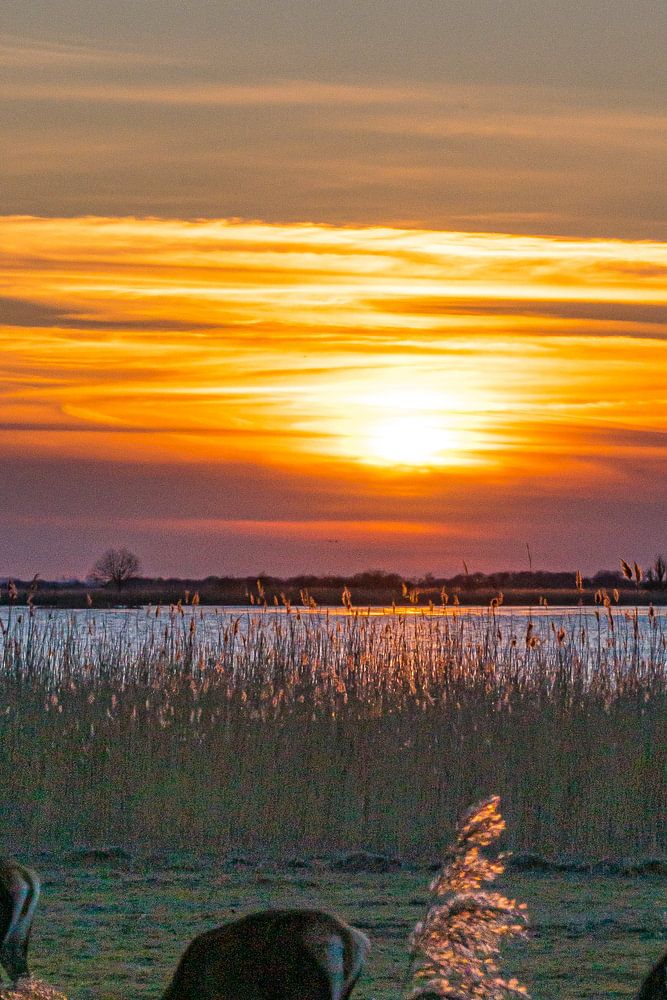 Coucher de soleil sur les cerfs au lac Oostvaarderplassen