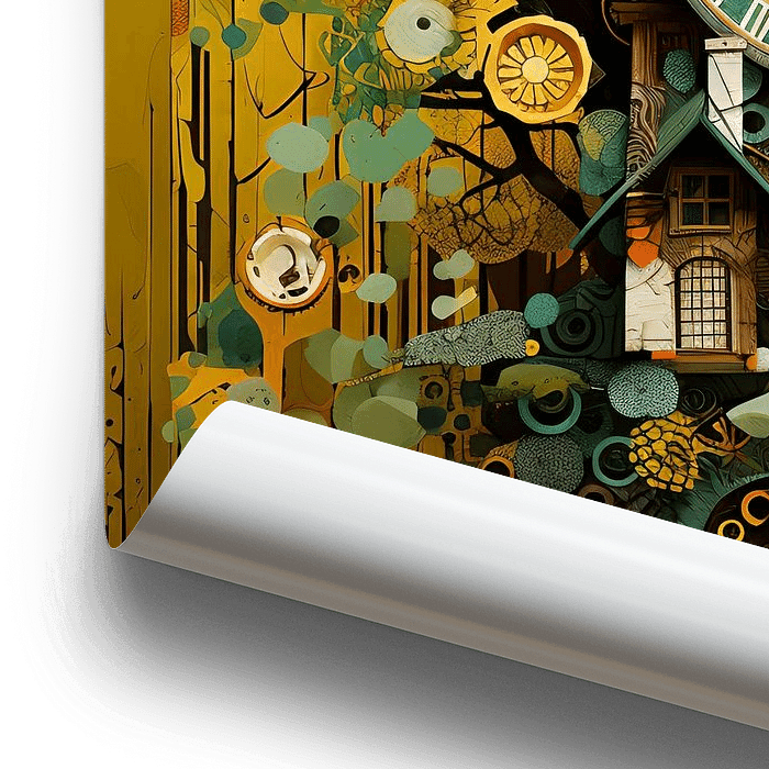 L'image montre une interprétation pop art moderne d'une horloge à coucou traditionnelle. Au centre de l'image se trouve une horloge à coucou colorée et vivante qui attire immédiatement l'attention. L'horloge est conçue dans des couleurs vives comme le vert et le brun et est décorée de motifs voyants. Cela…