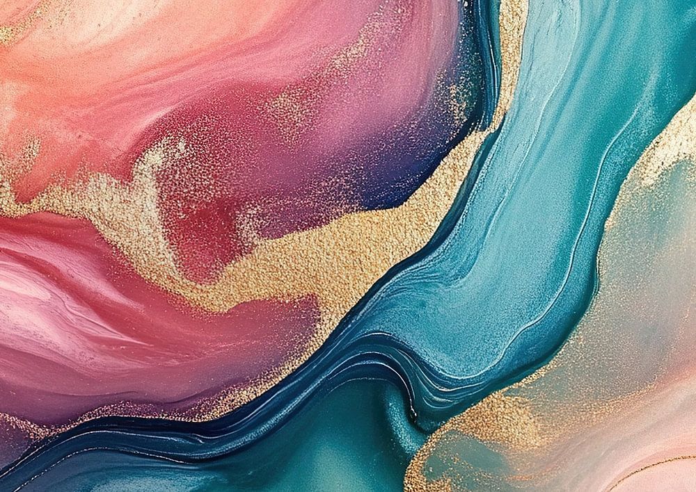Détails : abstrait, peinture, mouvement, rose, bleu, or, art, art moderne, dégradé, vagues