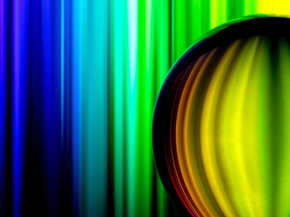 Photo abstraite d'une boule de lentille avec de nombreuses couleurs et un reflet en bas.